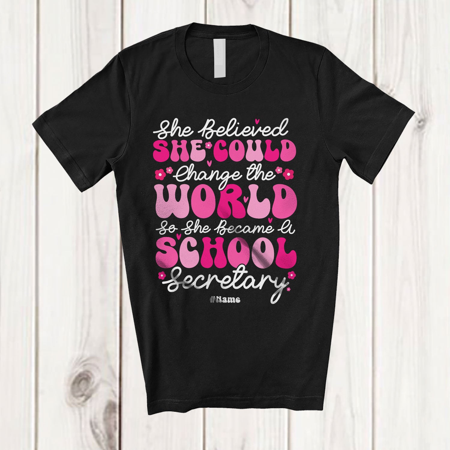 Personalized She Believed Change The World; Lovely Custom Name School secretary Jobs Proud T-Shirt