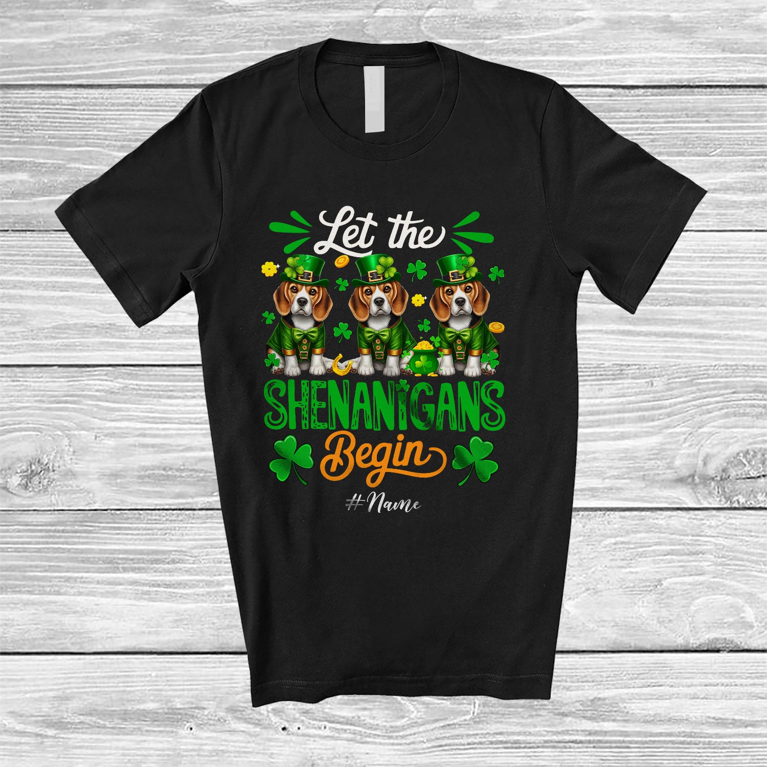 The Personalized Shenanigans Begin; Amusing St. Patrick's Day Custom Name Three Beagles Leprechaun T-Shirt is the yin, to your yang. You've found what you're looking for.