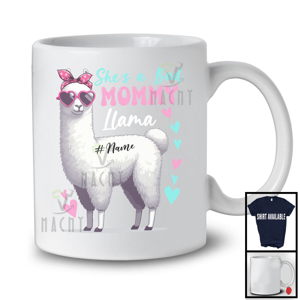 Personalized She's A Bad Mommy Llama; Joyful Mother's Day Sunglasses Custom Name Llama T-Shirt. This cotton t-shirt is a durable staple product with a classic fit. One of the most popular items, it has a relaxed style made for everyday and casual wear.