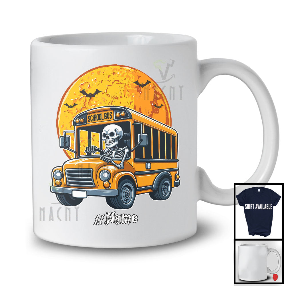 Personalized Skeleton Driving School Bus, Scary Halloween Custom Name School Bus Driver T-Shirt