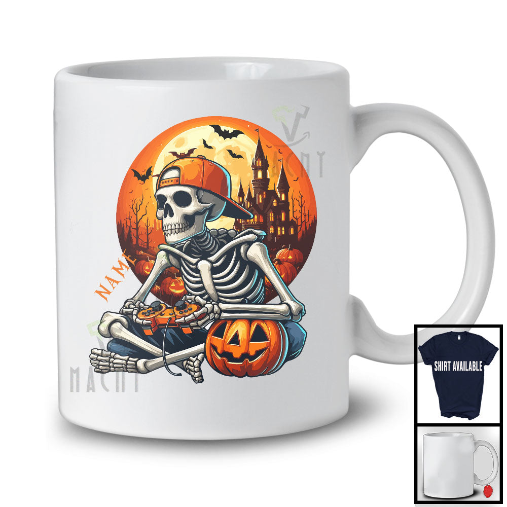 Personalized Skeleton Playing Games, Awesome Halloween Moon, Boys Custom Name Gamer T-Shirt. This cotton t-shirt is a durable staple product with a classic fit. One of the most popular items, it has a relaxed style made for everyday and casual wear.