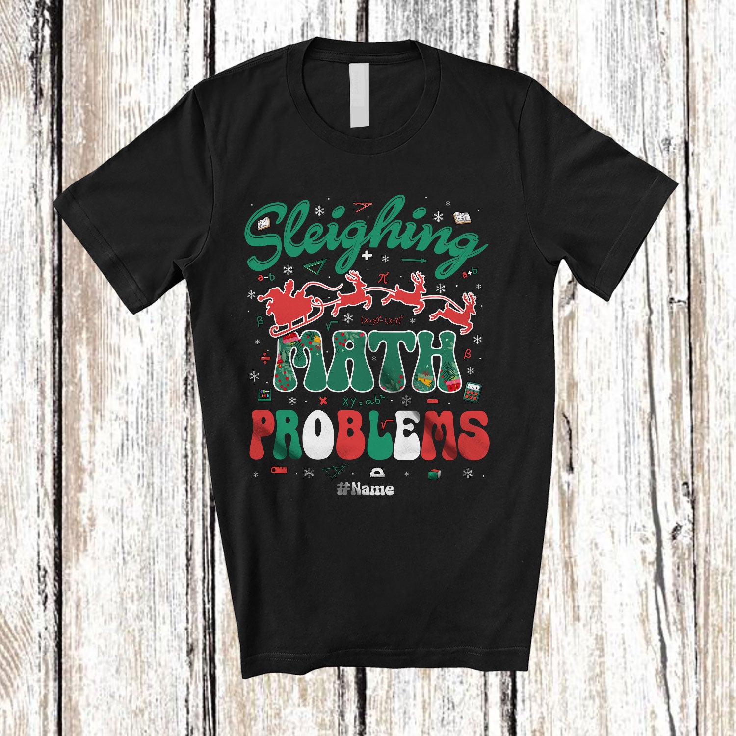 Personalized Sleighing Math Problems; Joyful Christmas Santa Sleigh; Custom Name Teacher T-Shirt