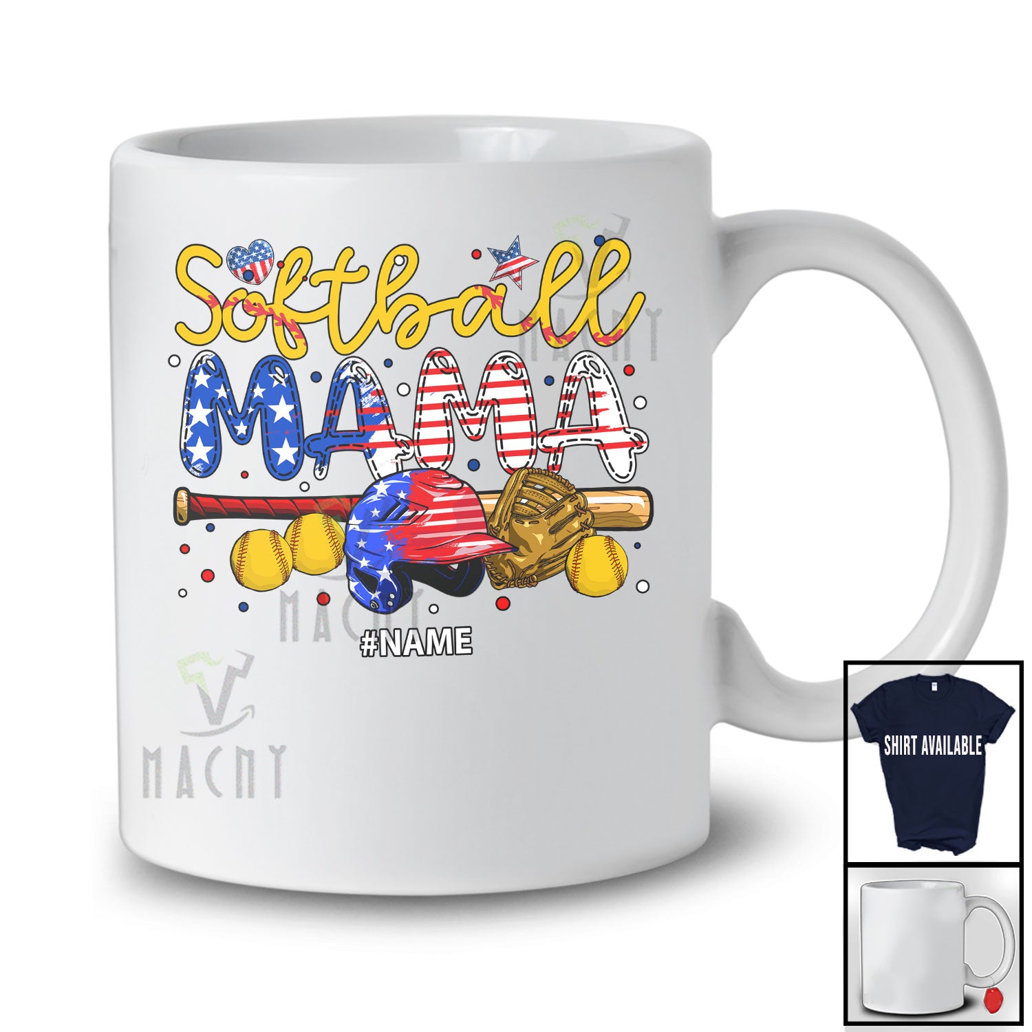 new MacnyStore - Personalized Softball Mama; Awesome 4th Of July Custom Name Softball Player; Patriotic Family T-Shirt – Macnystore