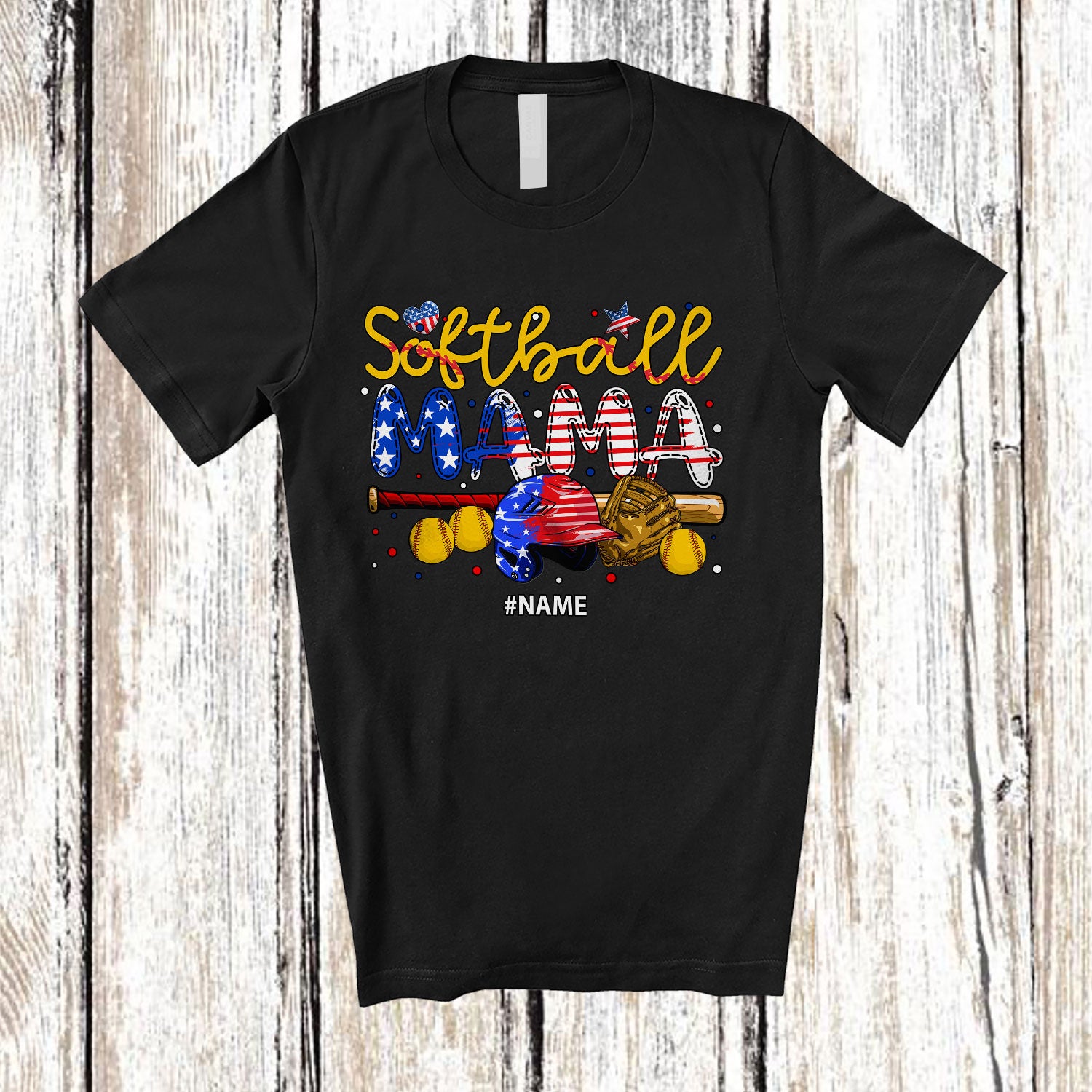 Personalized Softball Mama; Awesome 4th Of July Custom Name Softball Player; Patriotic Family T-Shirt