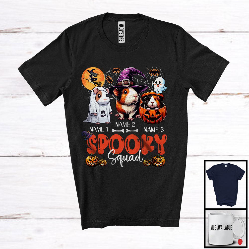 Personalized Spooky Squad, Lovely Halloween Three Witch Ghost Boo Guinea Pig, Animal Pumpkin T-Shirt