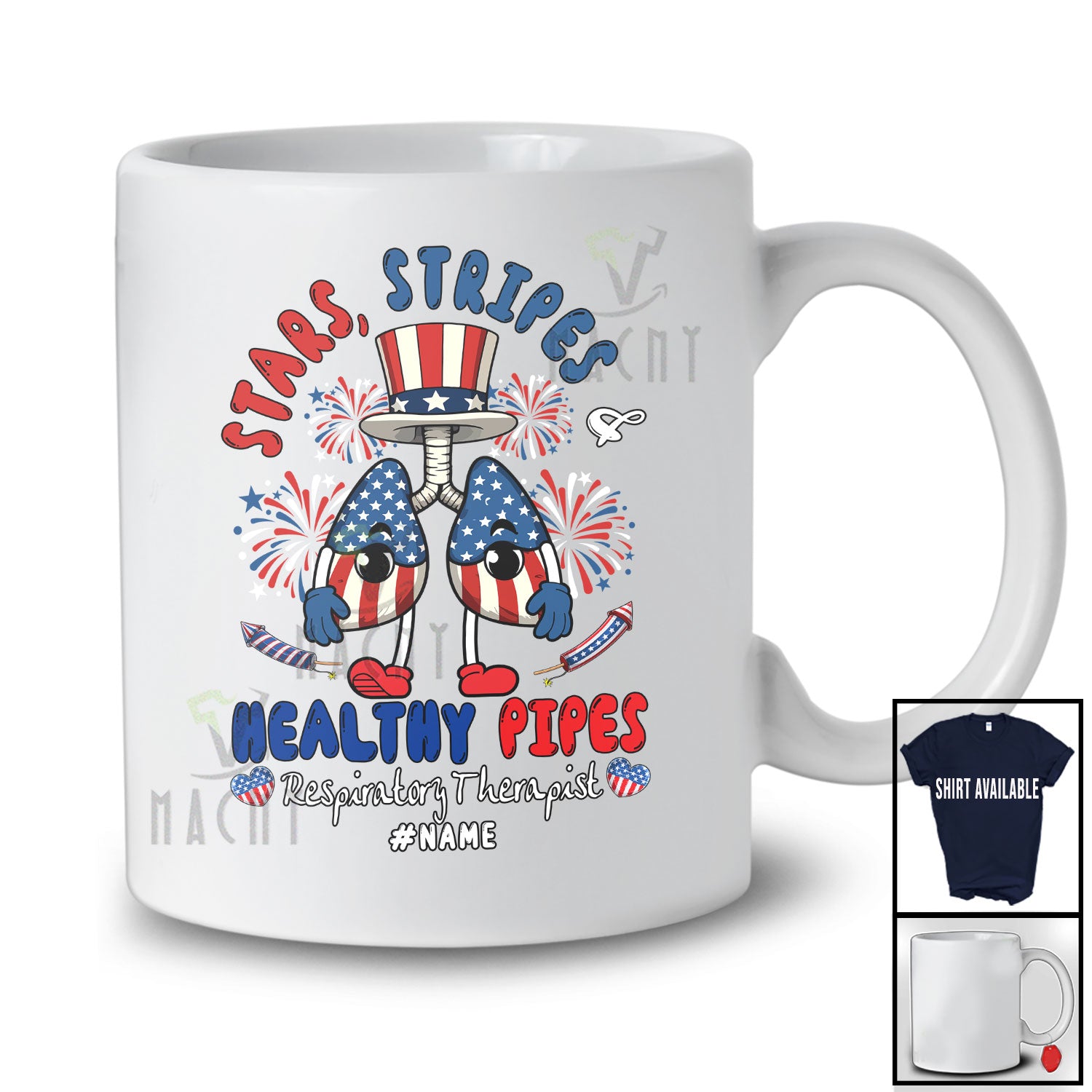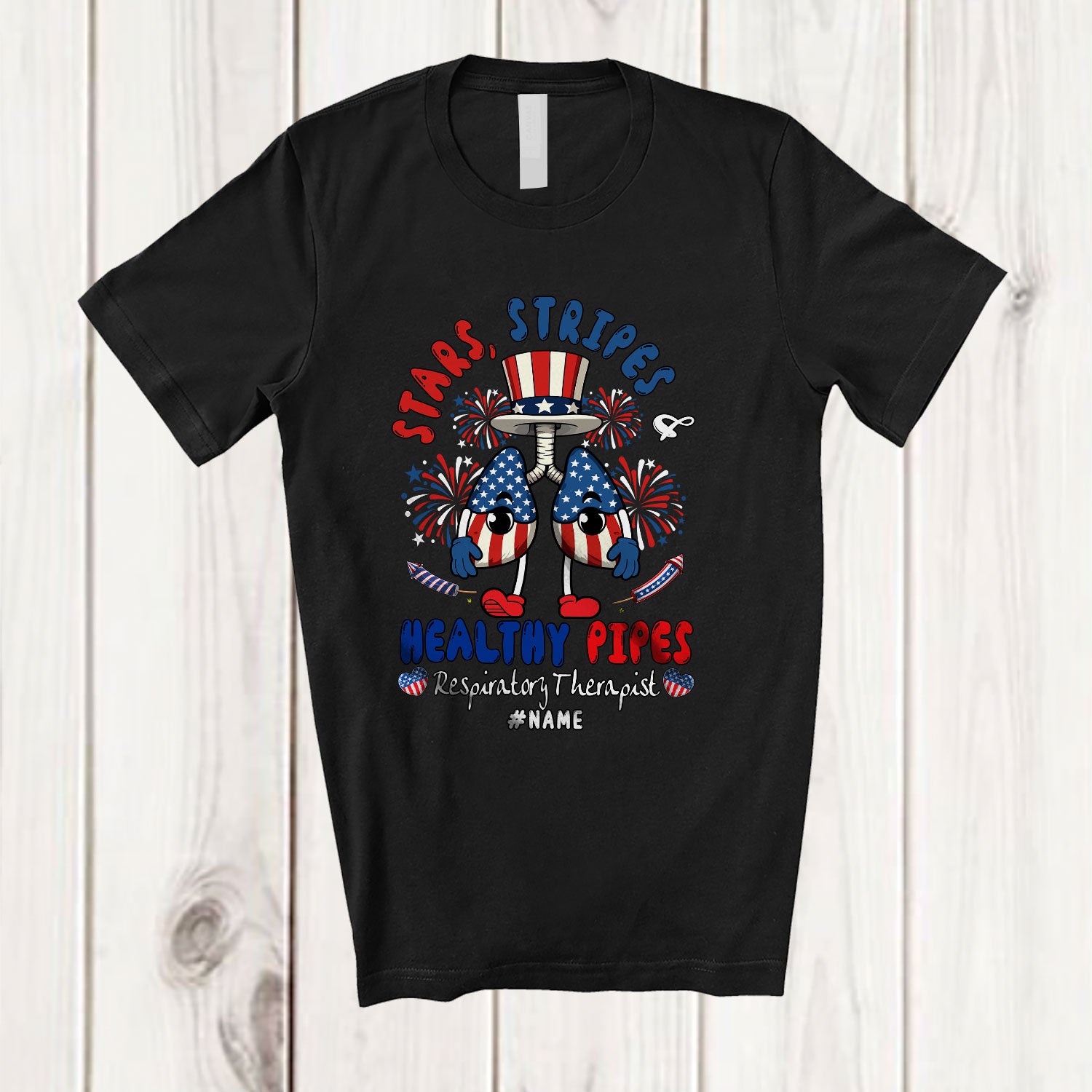 Personalized Stars Strips Healthy Pipes; Funny Lung Respiratory Therapist 4th of July T-Shirt