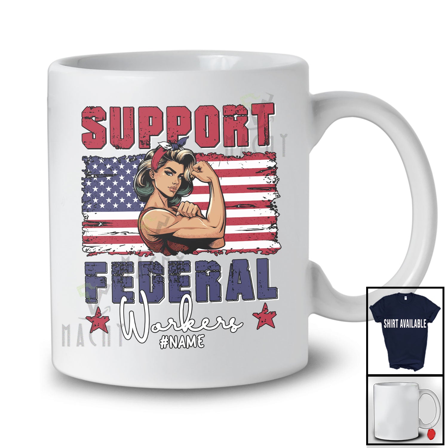 The Personalized Support Federal Workers; Amazing Custom Name Strong Women US Flag; Patriotic T-Shirt destined to impress, and priced at only $12.95, for a limited time.