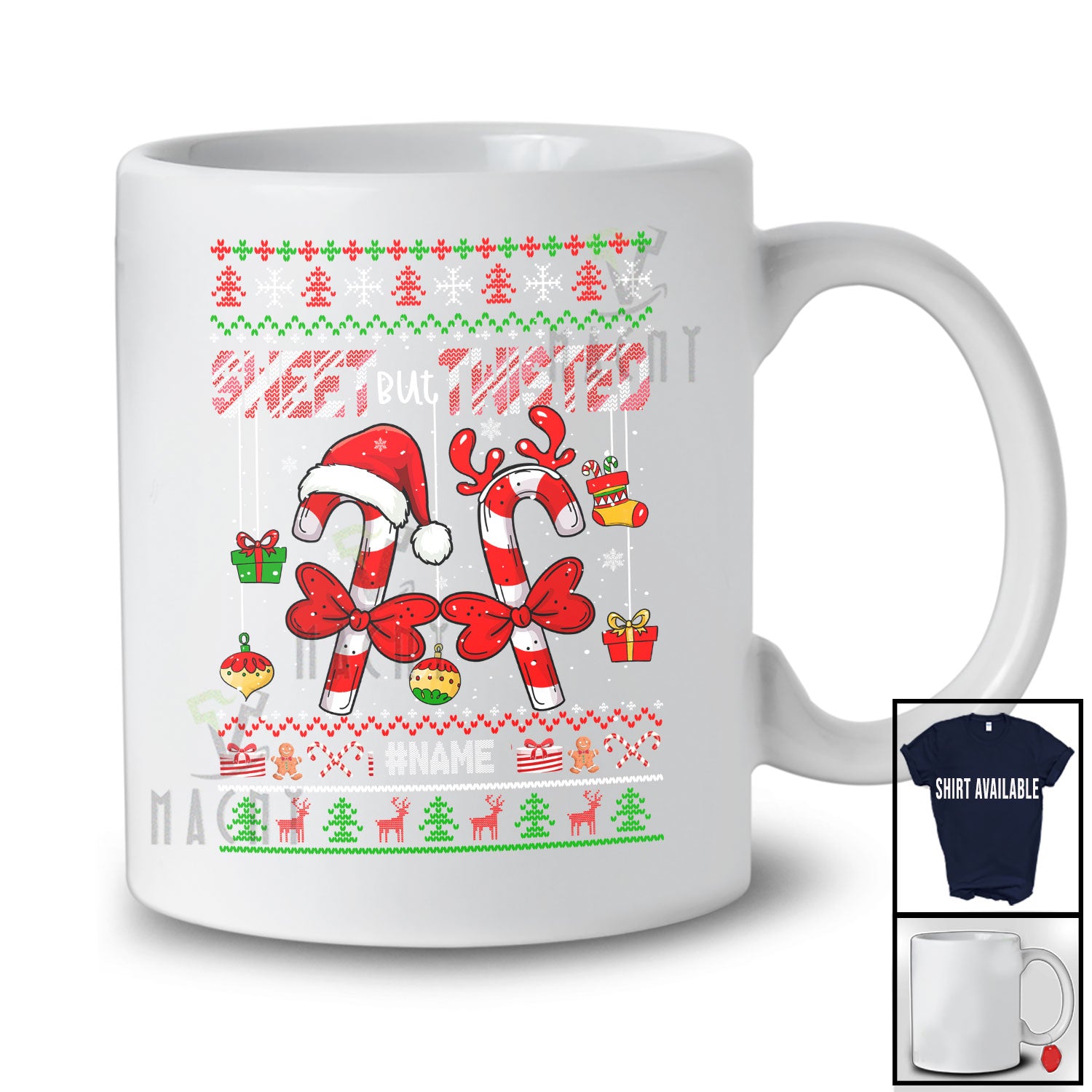 On the fence about this Personalized Sweet But Twisted; Joyful Christmas Sweater Candy Canes; Custom Name Couple T-Shirt? Don't be. Let our satisfaction guarantee address your concerns.