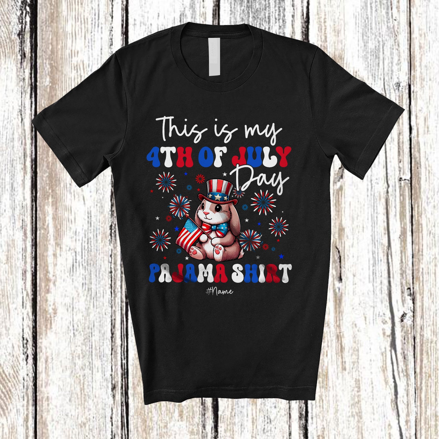 Personalized This Is My 4th Of July Day Pajama Shirt; Lovely Custom Name Bunnies; Family T-Shirt