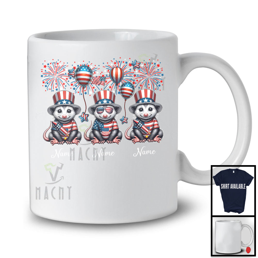 Personalized Three Custom Name Opossum, Amazing 4th Of July Wild Animal, Patriotic Group T-Shirt