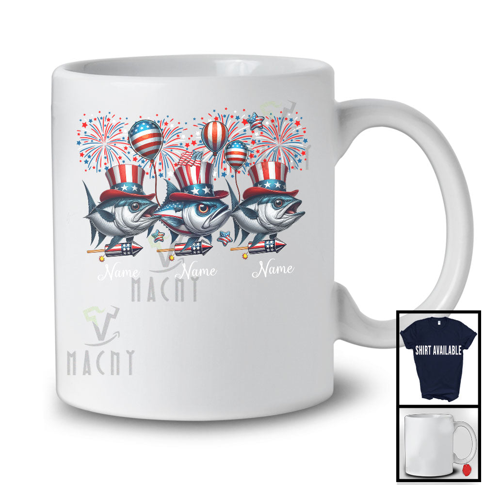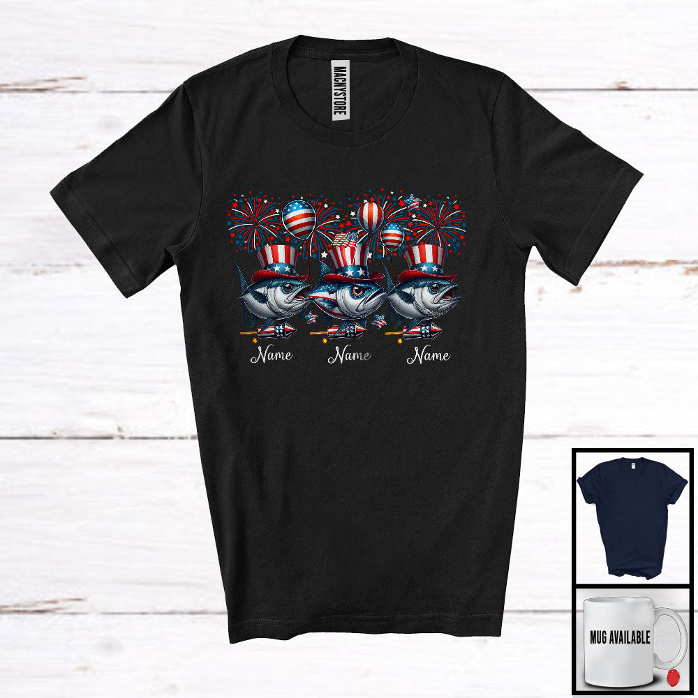 Personalized Three Custom Name Tuna, Amazing 4th Of July Sea Animal Lover, Patriotic Group T-Shirt