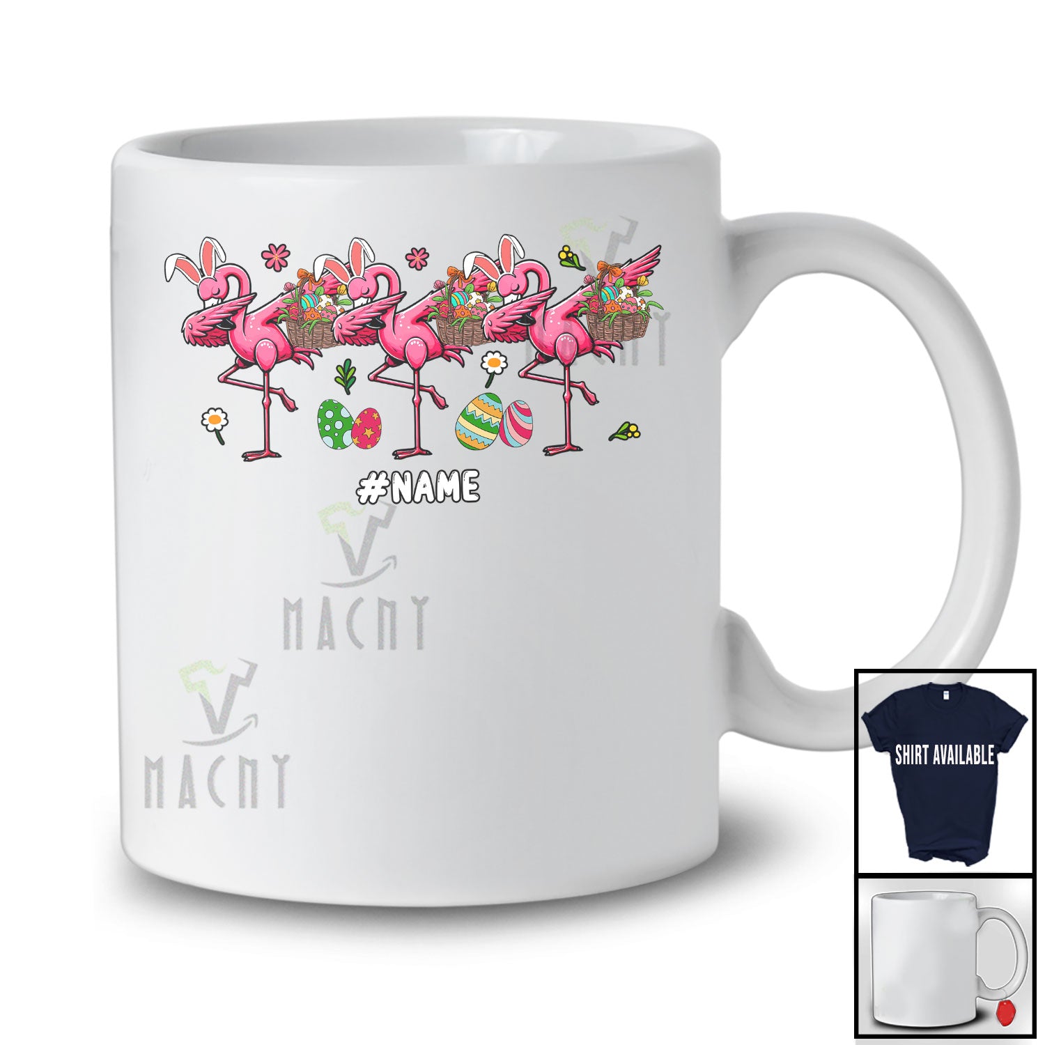 Personalized Three Dabbing Flamingo With Egg Basket; Amazing Easter Flamingo Bunny; Egg Hunt Group T-Shirt