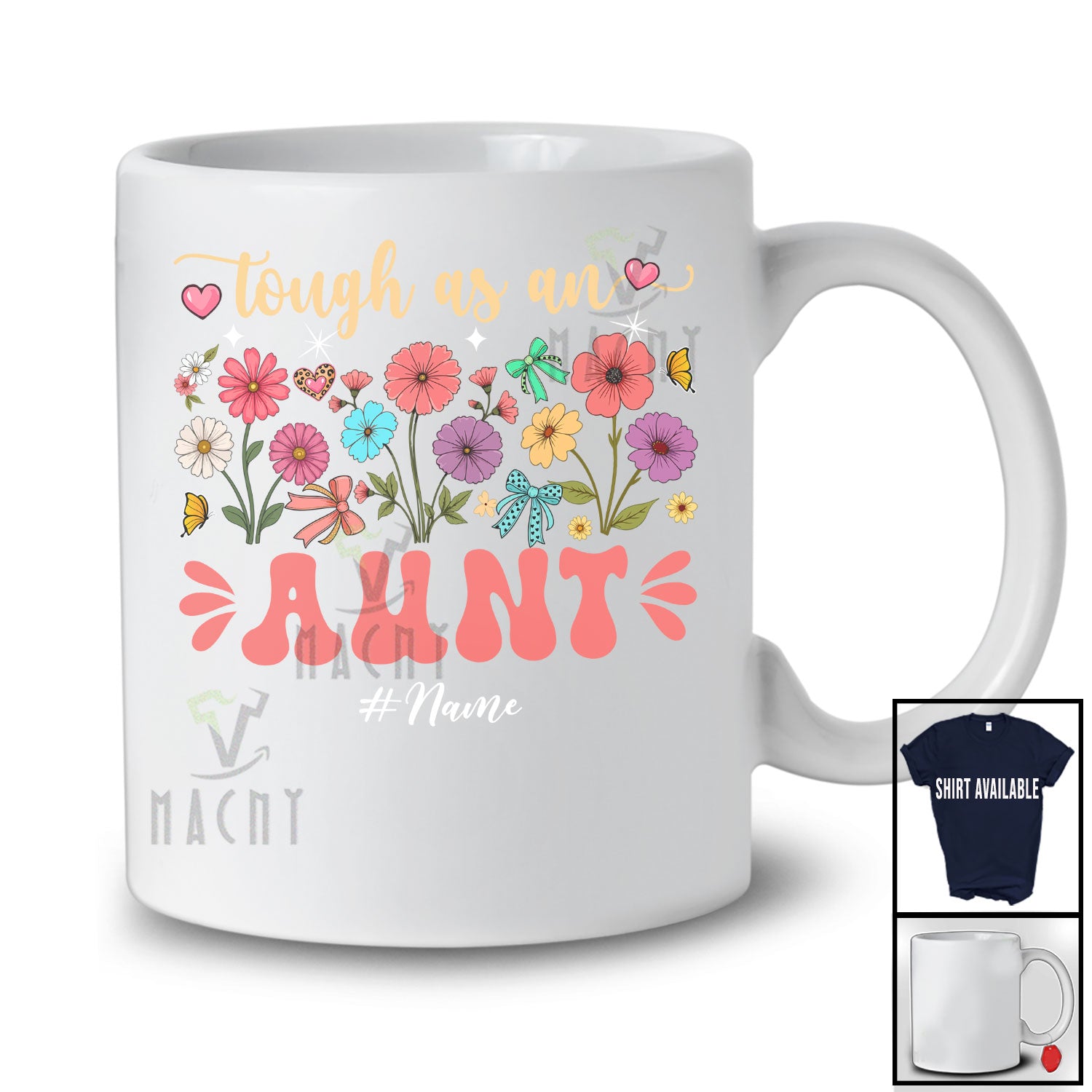 Personalized Tough As An Aunt; Floral Mother's Day Flowers; Custom Name Aunt Family T-Shirt. This cotton t-shirt is a durable staple product with a classic fit. One of the most popular items, it has a relaxed style made for everyday and casual wear.