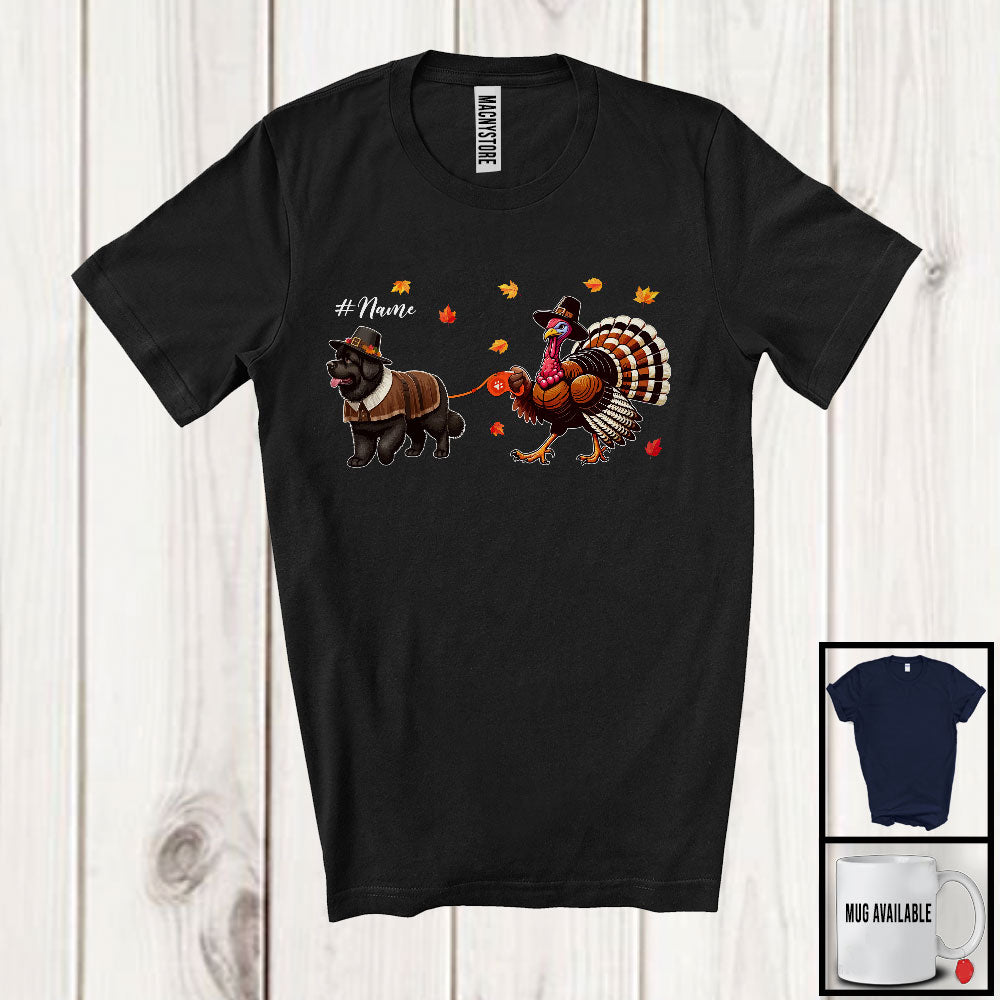 Personalized Turkey Walking With Newfoundland; Happy Thanksgiving Custom Name Family T-Shirt
