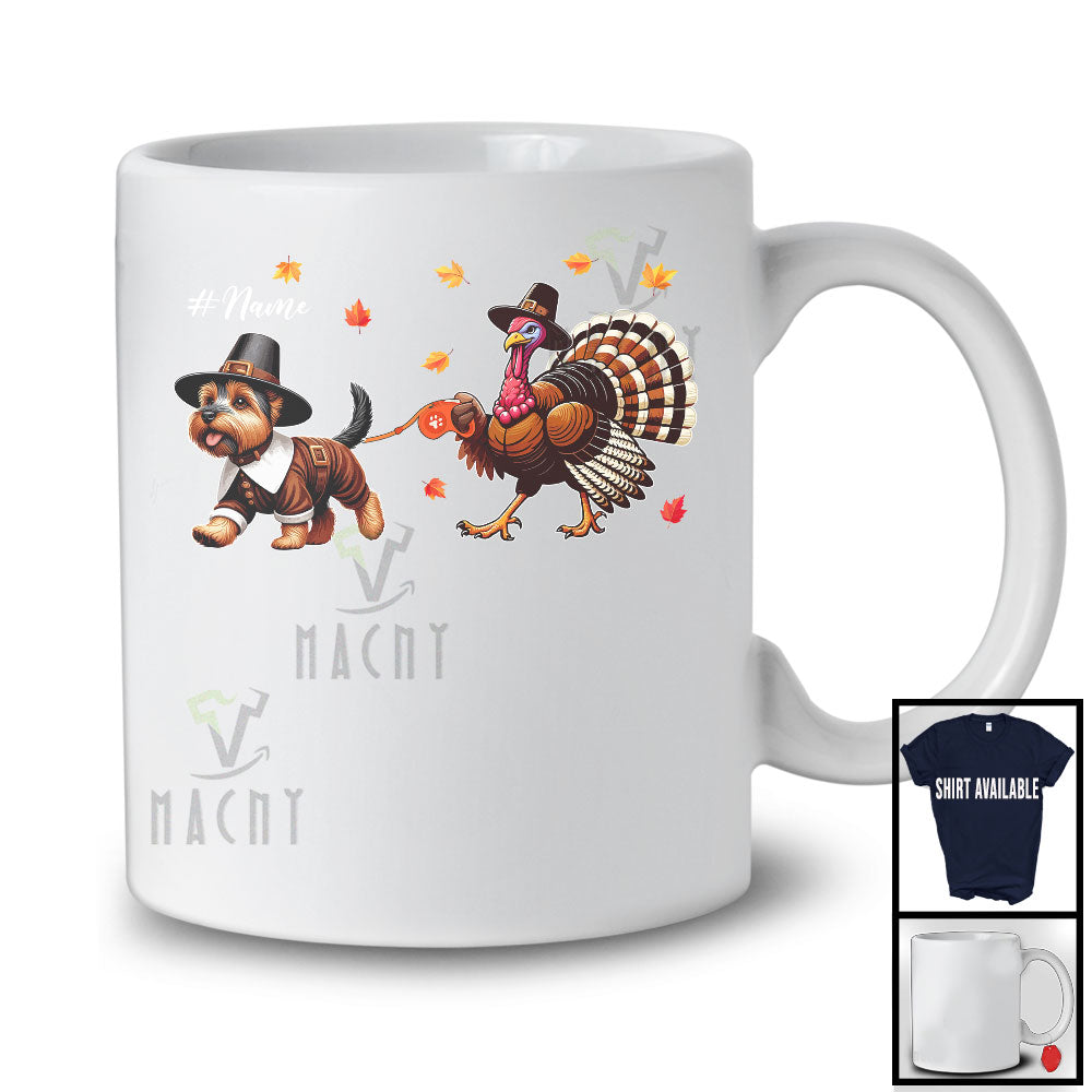 Personalized Turkey Walking With Norwich Terrier; Happy Thanksgiving Custom Name Family T-Shirt