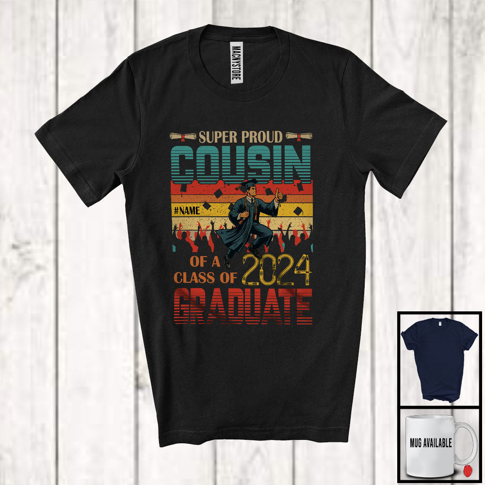 new MacnyStore - Personalized Vintage Retro Cousin Class Of 2024 Graduate, Super Proud Graduation Custom Name Boy Family T-Shirt – Macnystore