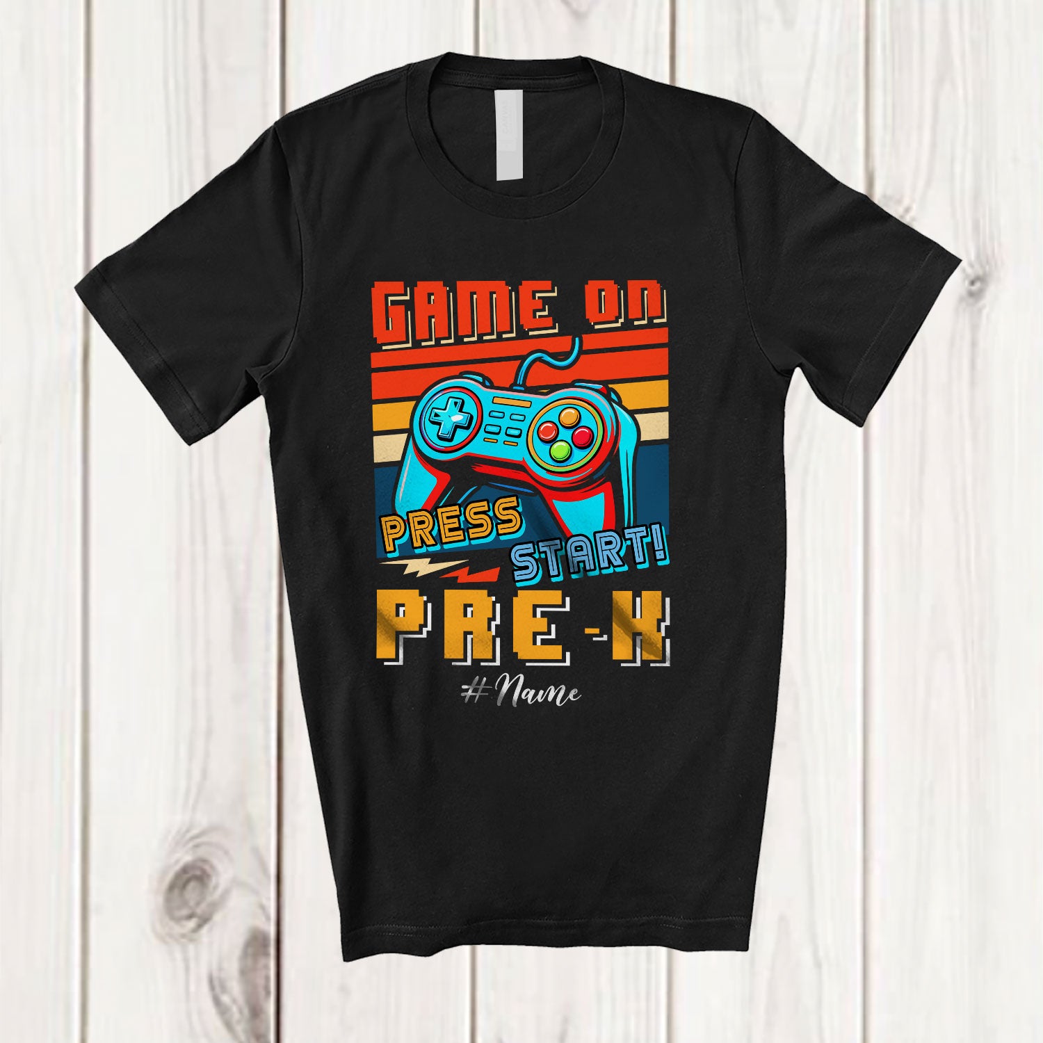 Personalized Vintage Retro Game On Pre-K; Proud Back To School First Day Custom Name Gamer T-Shirt