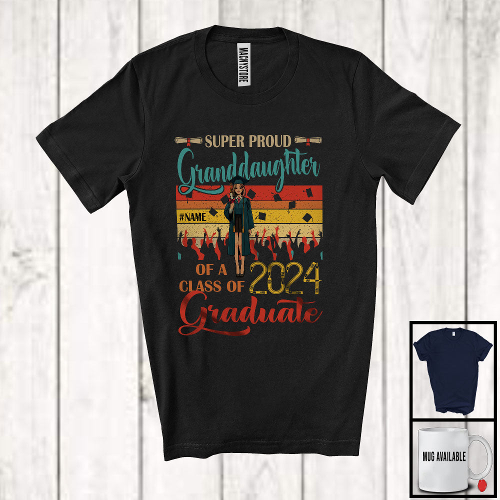 Personalized Vintage Retro Granddaughter Class Of 2024 Graduate, Super Proud Graduation Custom Name Family T-Shirt