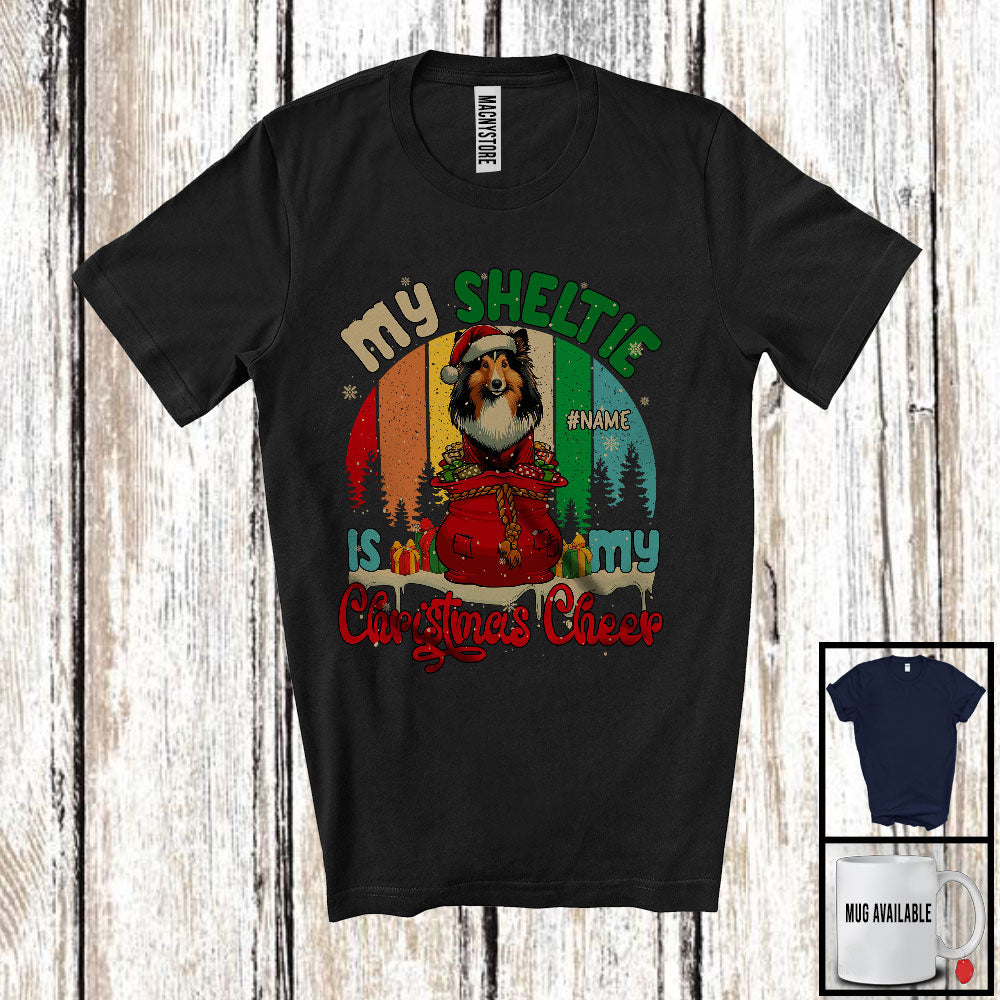 Personalized Vintage Retro My Sheltie Is My Christmas Cheer; Merry X-mas Santa Custom Name T-Shirt