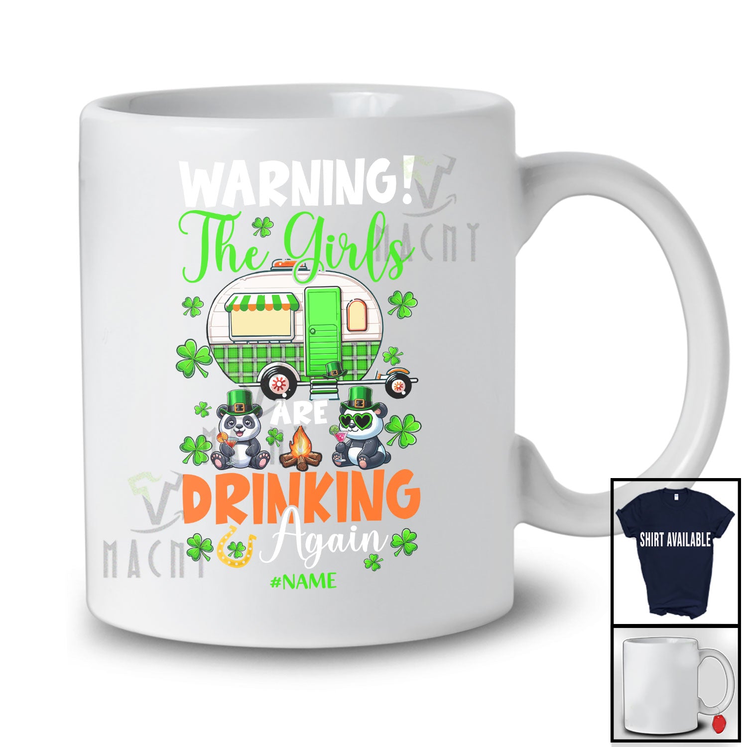• Personalized Warning Girls Are Drinking Again; Lovely St. Patrick's Day Custom Name Panda Camping T-Shirt. This cotton t-shirt is a durable staple product with a classic fit. One of the most popular items, it has a relaxed style made for everyday and casual wear.