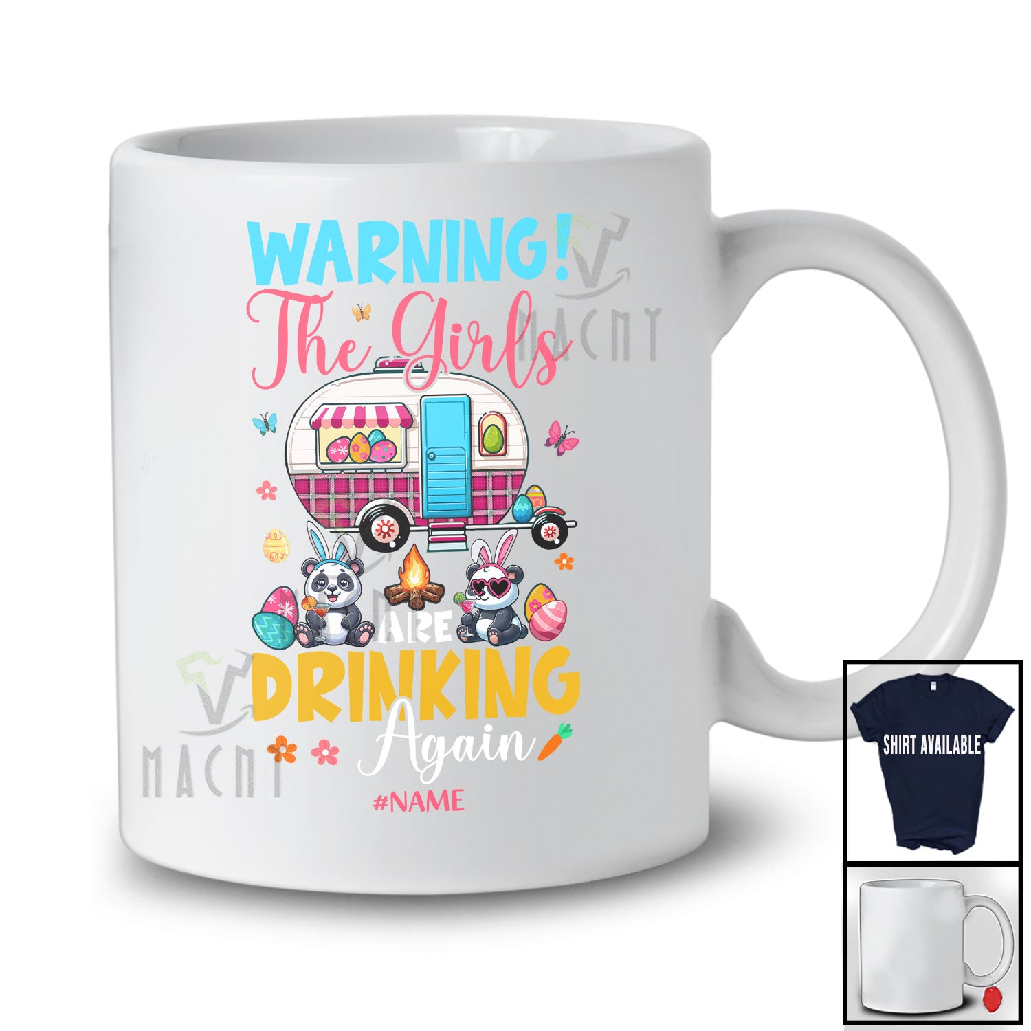 • Personalized Warning The Girls Are Drinking Again; Lovely Easter Custom Name Panda Camping T-Shirt. This cotton t-shirt is a durable staple product with a classic fit. One of the most popular items, it has a relaxed style made for everyday and casual wear.
