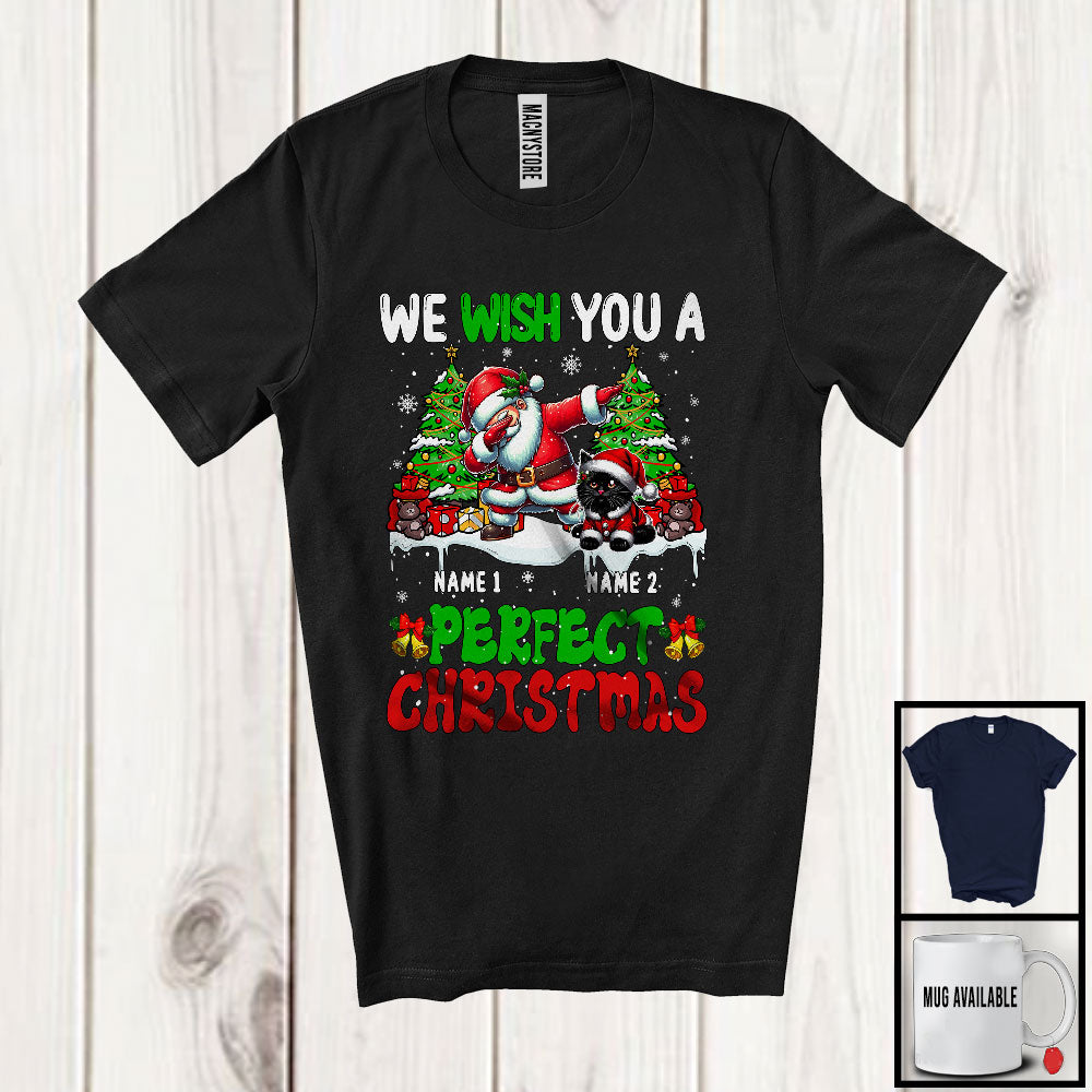 Personalized We Wish You A Perfect Christmas; Lovely Custom Name Cat And Santa Dabbing T-Shirt