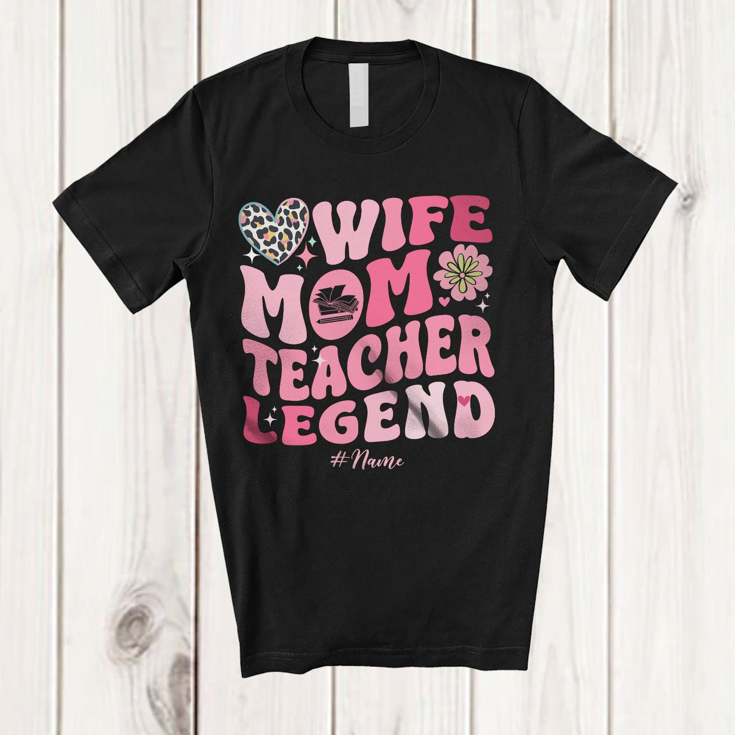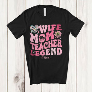 Personalized Wife Mom Teacher Legend; Floral Mother's Day Leopard Teacher Custom Name Family T-Shirt
