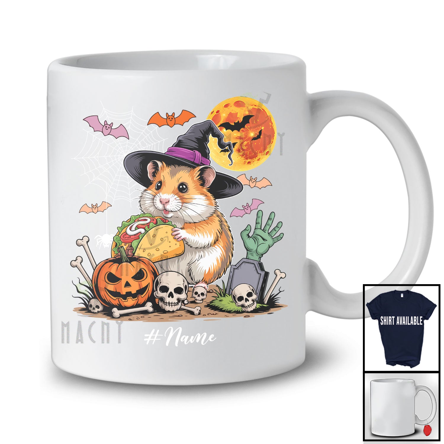 The Personalized Witch Hamster Holding Taco; Humorous Halloween Custom Name Lunch Lady Chef T-Shirt destined to impress, and priced at only $12.95, for a limited time.