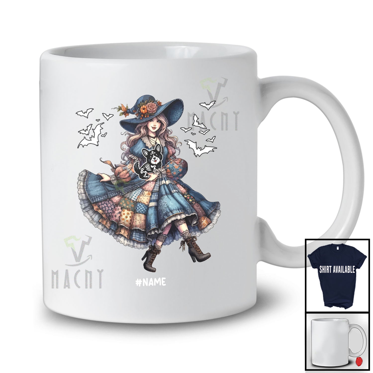 Personalized Witch Hugging Corgi; Amusing Halloween Custom Name Animal Lover T-Shirt