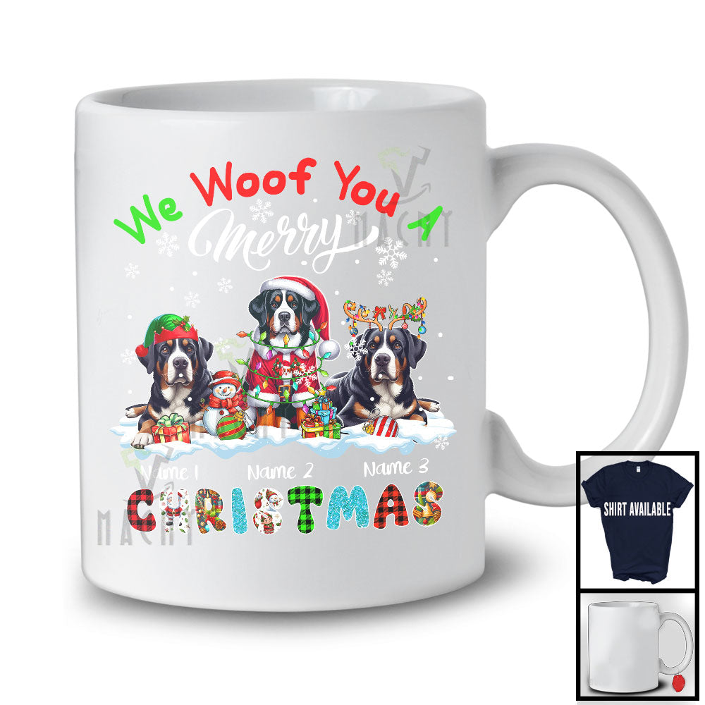 • The Personalized Woof You A Merry Christmas; Lovely Plaid Greater Swiss Mountains Custom Name T-Shirt is far and away, one of our most popular items. People can't seem to get enough of it.