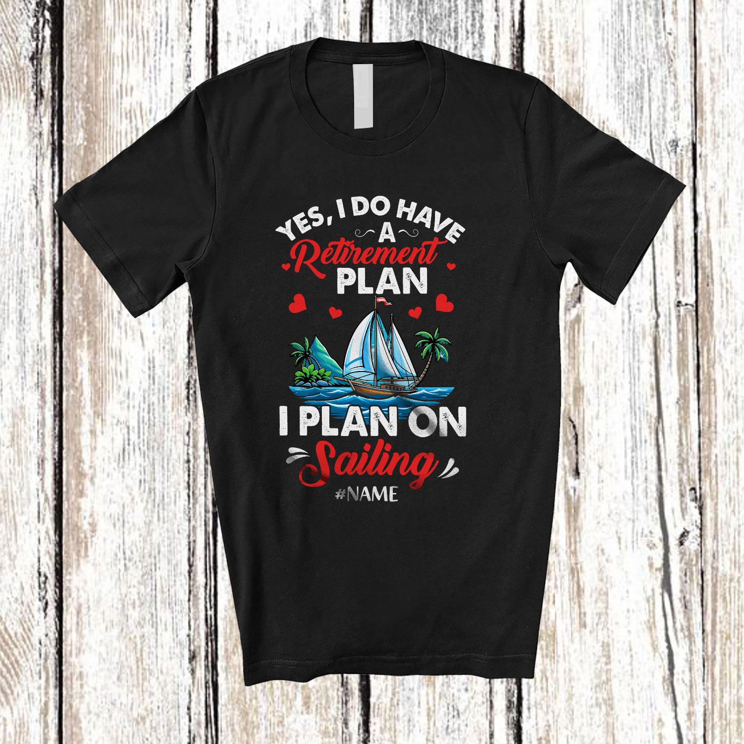 Personalized Yes I Do Have A Retirement I Plan On Sailing; Amusing Custom Name Retired; Family T-Shirt. This cotton t-shirt is a durable staple product with a classic fit. One of the most popular items, it has a relaxed style made for everyday and casual wear.