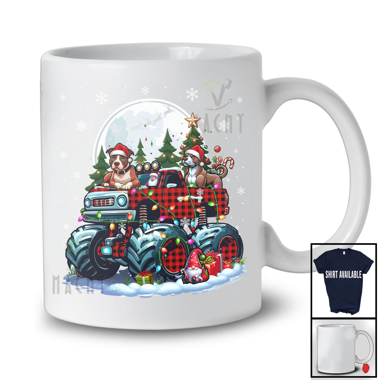 Pit Bull On Monster Truck Red Plaid; Lovely Christmas Moon Pit Bull Owner; Family Group T-Shirt. This cotton t-shirt is a durable staple product with a classic fit. One of the most popular items, it has a relaxed style made for everyday and casual wear.