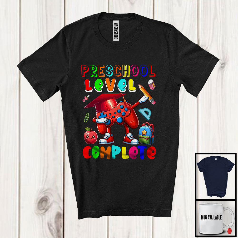 Preschool Level Complete, Adorable Summer Vacation Dabbing Game Controller, Student Gamer T-Shirt. This cotton t-shirt is a durable staple product with a classic fit. One of the most popular items, it has a relaxed style made for everyday and casual wear.