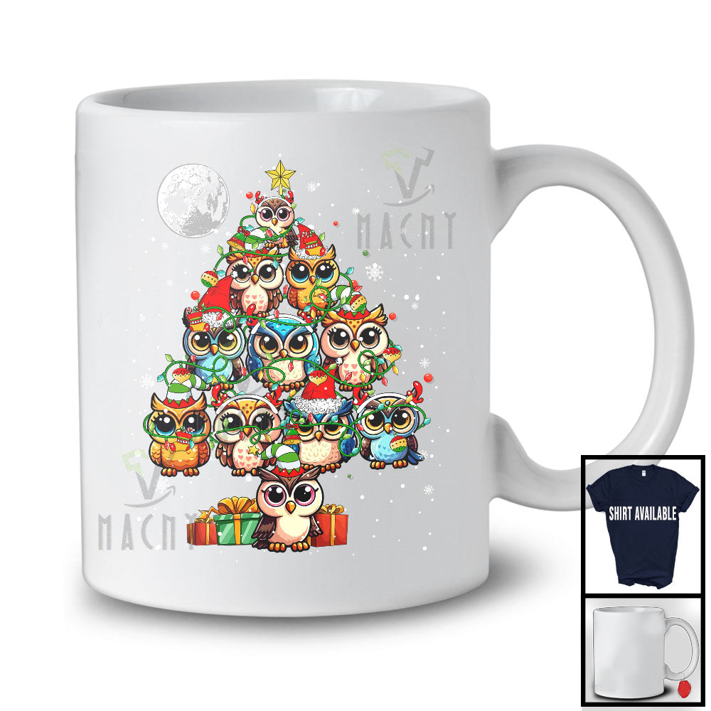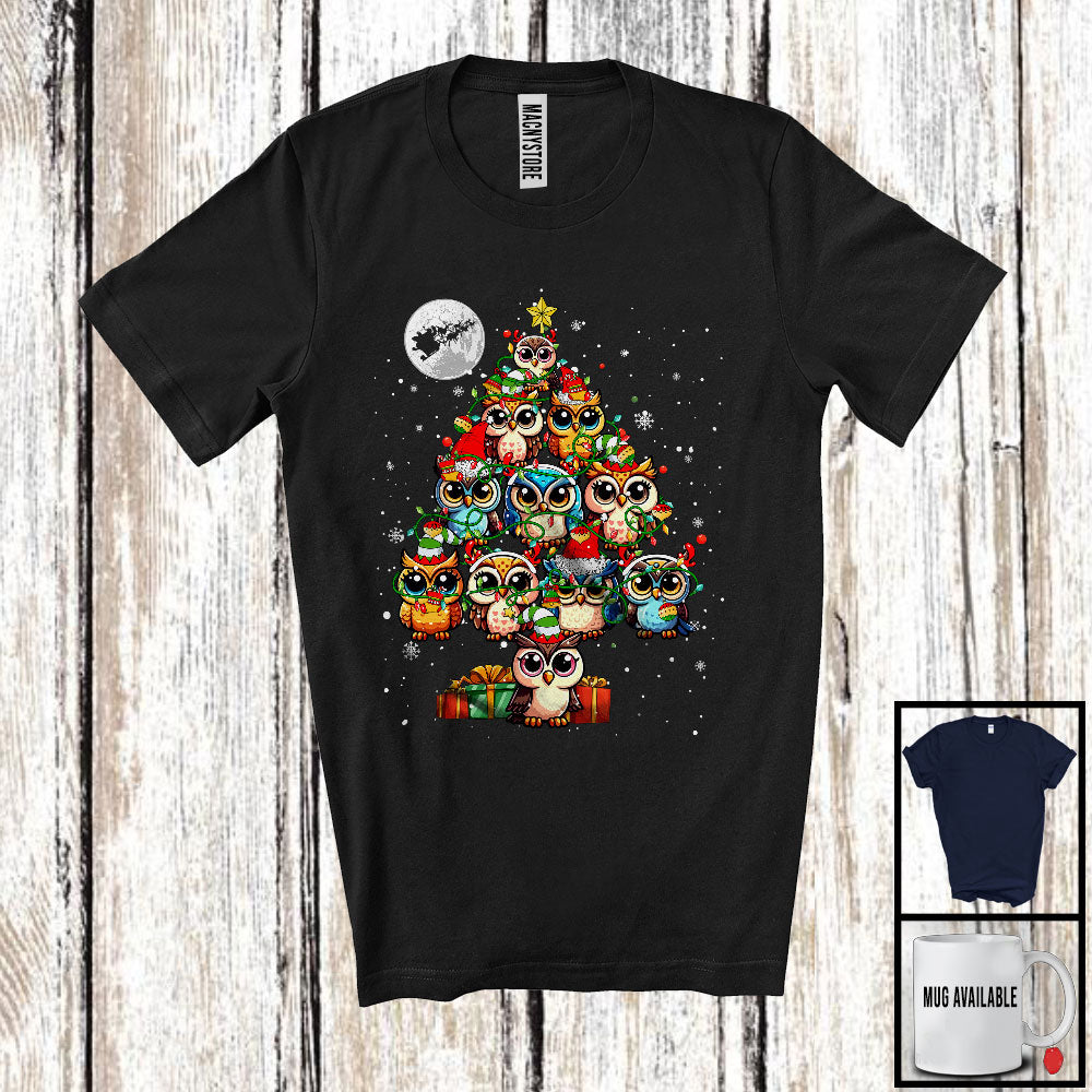 Reindeer Elf Owl Christmas Tree Lights; Adorable X-mas Owl Animal Snowing; Family Group T-Shirt
