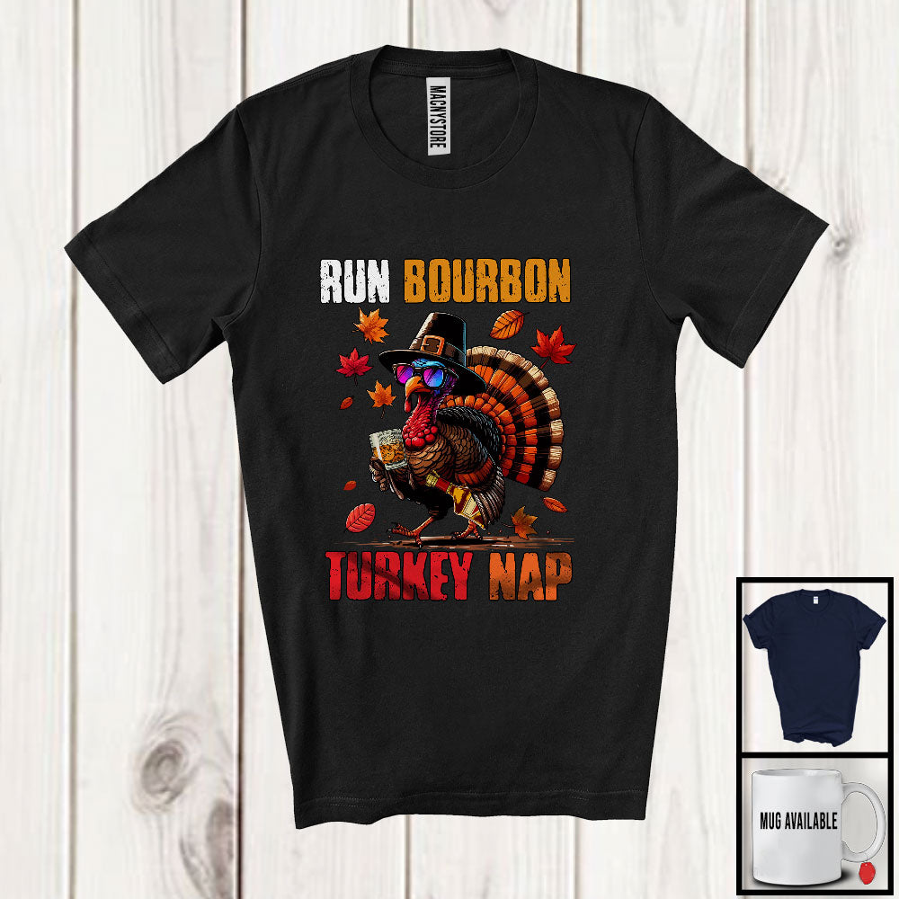 Run Bourbon Turkey Nap; Sarcastic Thanksgiving Turkey Sunglasses Bourbon; Drinking Drunker T-Shirt