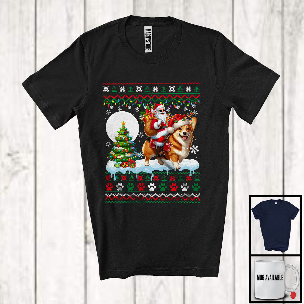 Santa Riding Reindeer Corgi Puppy; Amazing Christmas Sweater Santa; Snowing X-mas T-Shirt