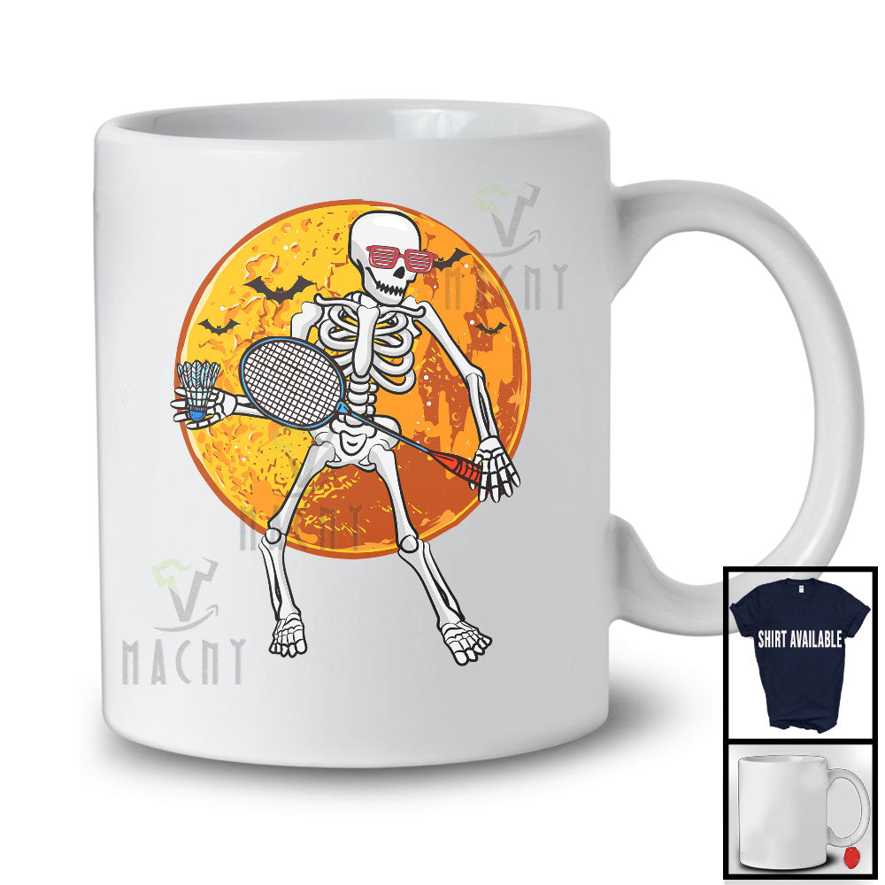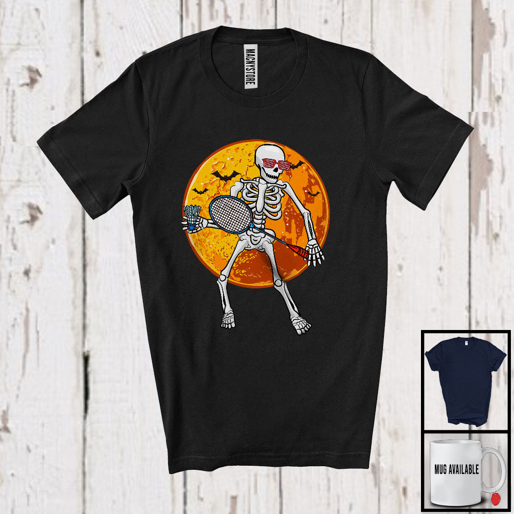 Skeleton Playing Badminton, Joyful Halloween Badminton Player Lover, Matching Sport Team T-Shirt