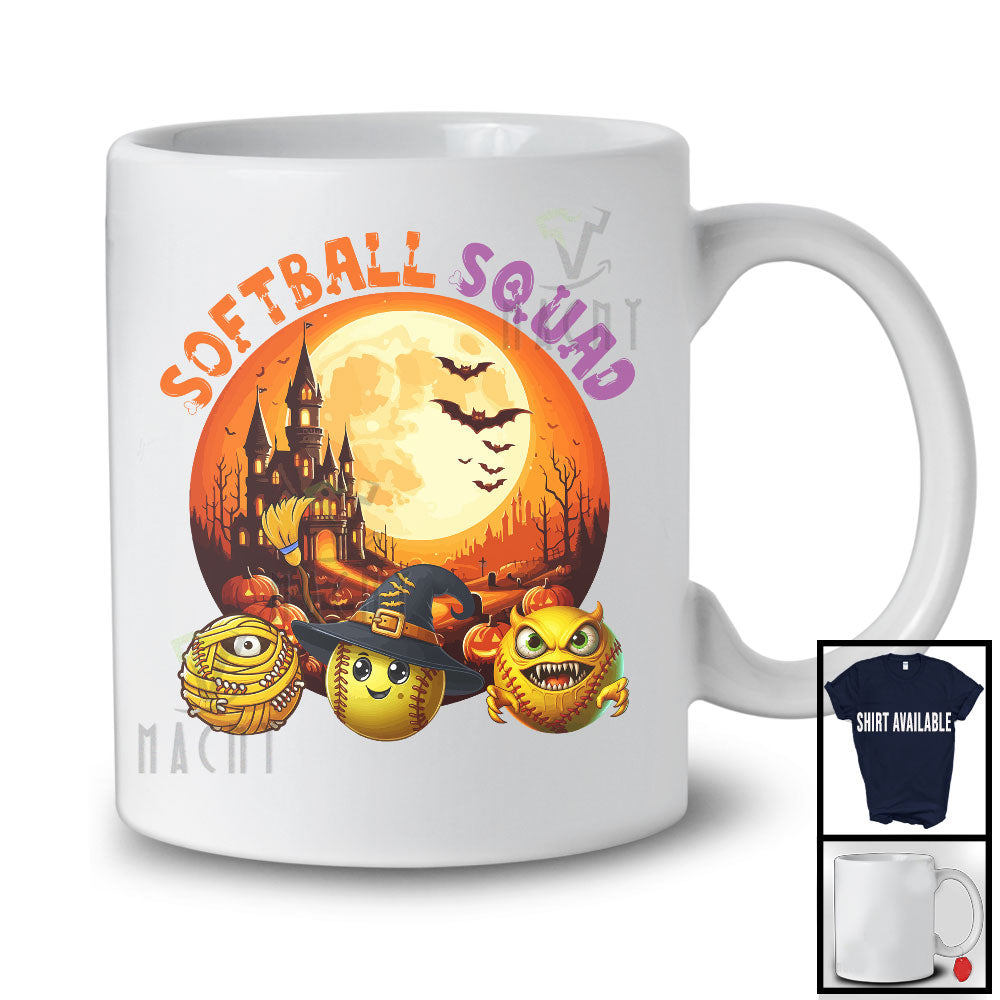 • Softball Squad, Proud Halloween Three Mummy Monster Witch, Sport Player Playing Team T-Shirt. This cotton t-shirt is a durable staple product with a classic fit. One of the most popular items, it has a relaxed style made for everyday and casual wear.
