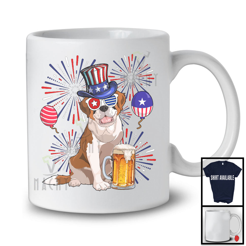 new MacnyStore - St Bernard Drinking Beer, Cheerful 4th Of July Drunker Fireworks, American Flag Patriotic Group T-Shirt – Macnystore