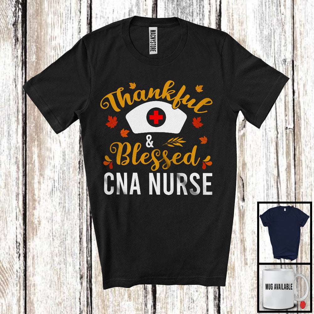Thankful And Blessed CNA Nurse; Wonderful Thanksgiving Nurse Hat Fall Leaf; Matching Nursing T-Shirt. This cotton t-shirt is a durable staple product with a classic fit. One of the most popular items, it has a relaxed style made for everyday and casual wear.