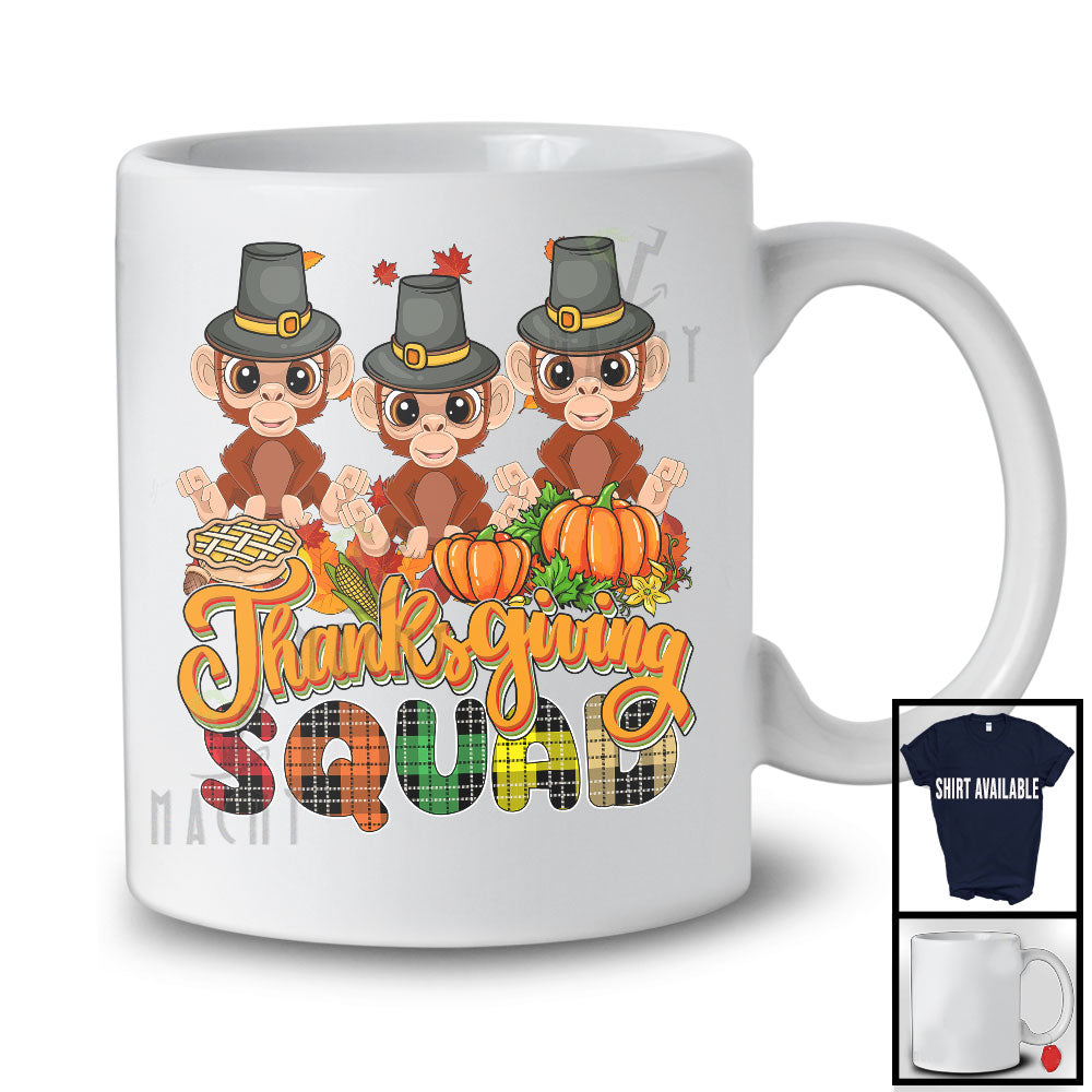 This Thanksgiving Squad; Adorable Plaid Pumpkin Fall Leaf Three Pilgrim Monkeys, Animal Lover T-Shirt is great idea gift for your family, friends in this birthday, christmas, mother's day, father's day, patrick's day or any holiday.