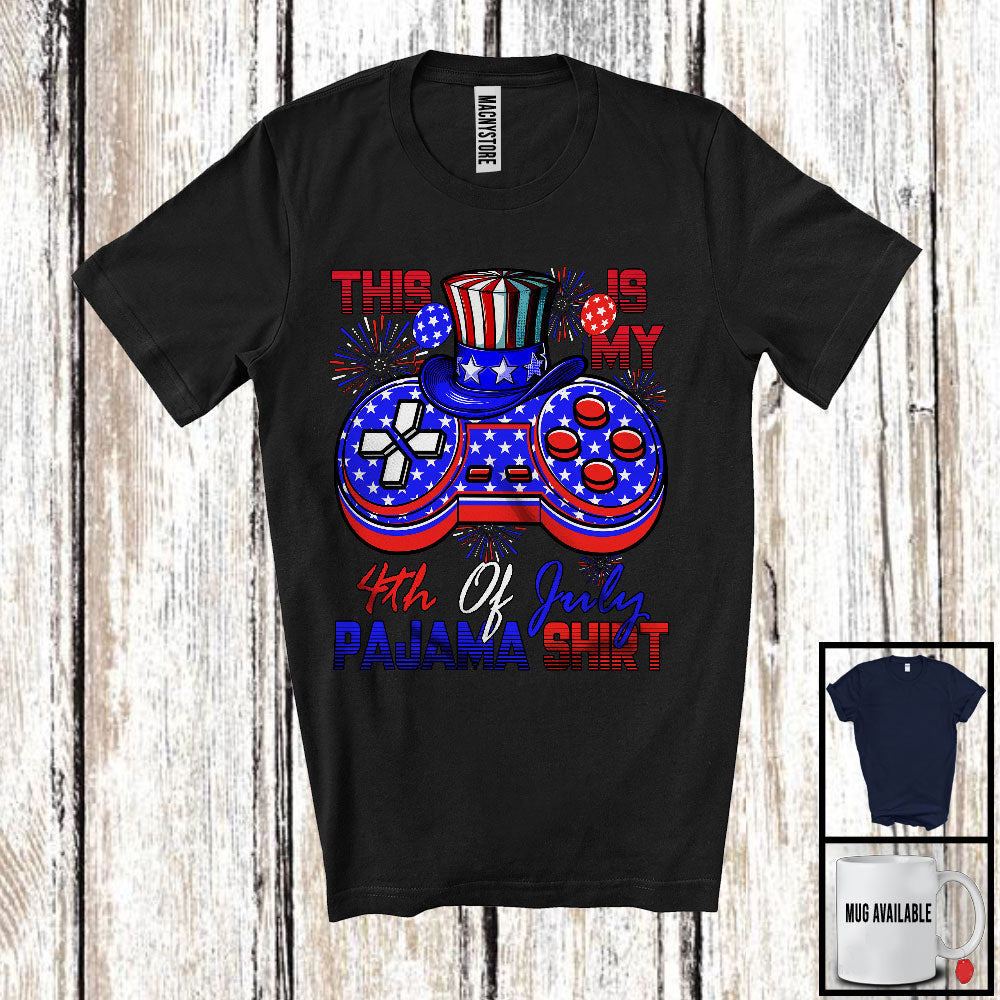 This Is My 4th Of July Pajama Shirt, Proud American Flag Game Controller Gamer, Fireworks Patriotic T-Shirt