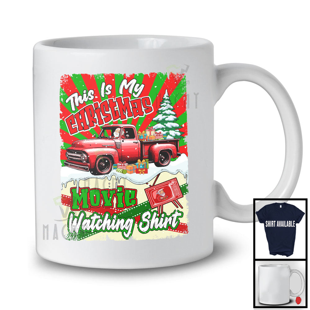 This Is My Christmas Movie Watching Shirt; Merry X-mas Santa Riding Red Pickup Truck; Family T-Shirt