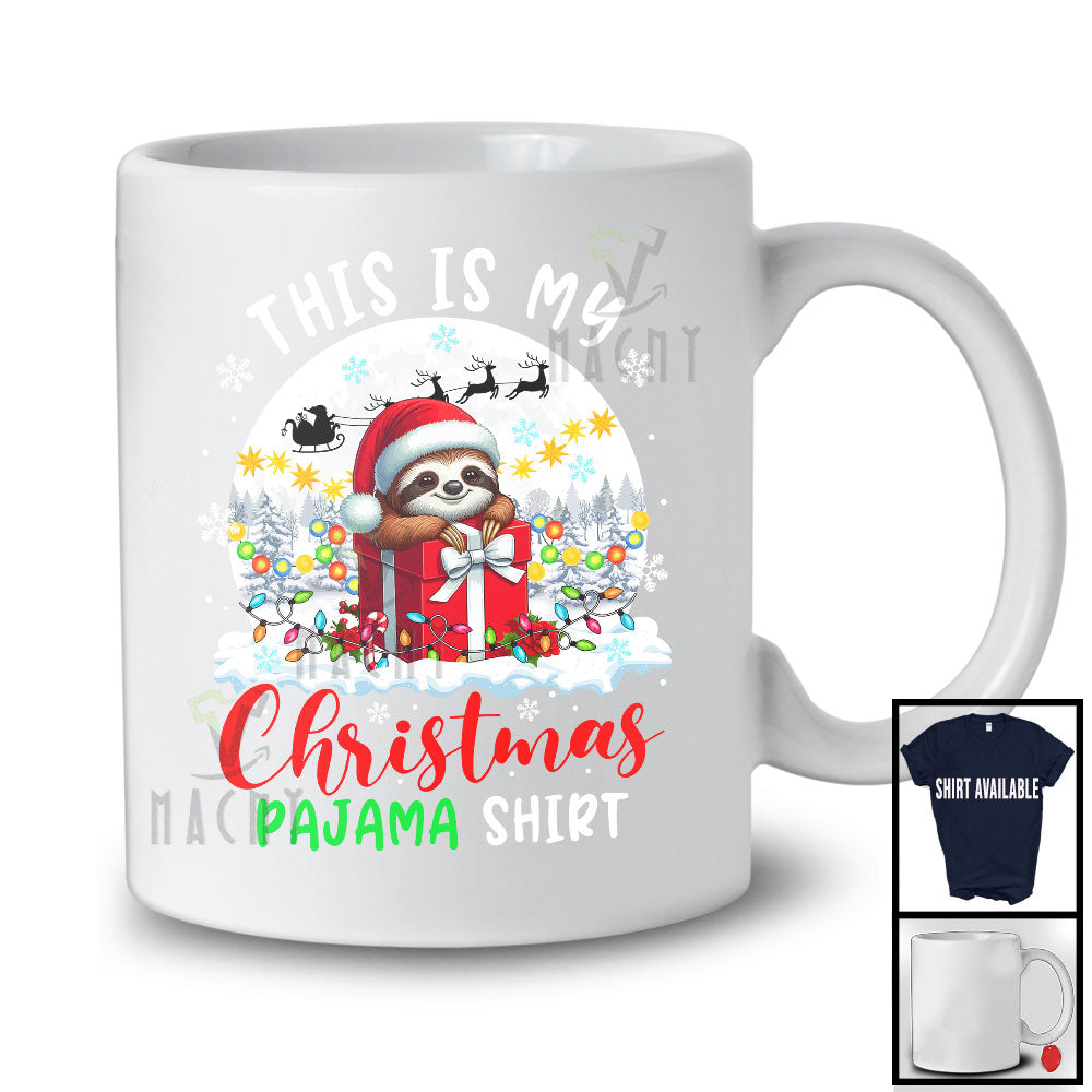 This Is My Christmas Pajama Shirt; Wonderful X-mas Moon Santa Sloth; Christmas Lights Family T-Shirt. This cotton t-shirt is a durable staple product with a classic fit. One of the most popular items, it has a relaxed style made for everyday and casual wear.