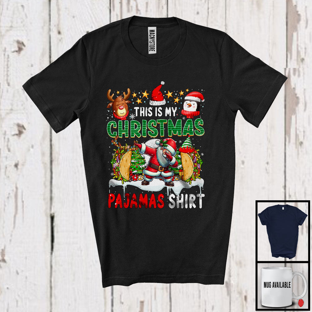 This Is My Christmas Pajamas Shirt; Joyful X-mas Tree Dabbing Santa Taco; Eating Food T-Shirt