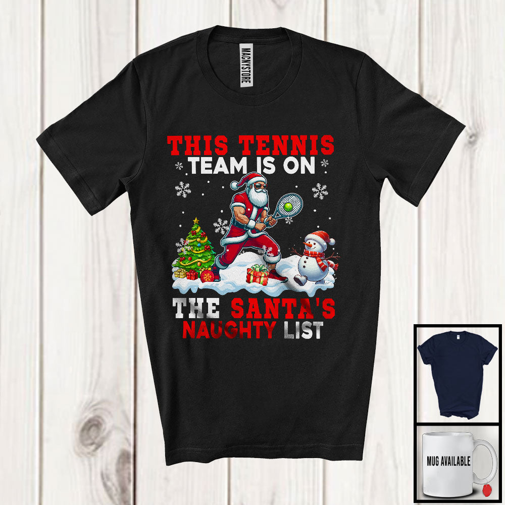 This Tennis Team Is On The Santa's Naughty List; Humorous Christmas Santa Snow; Sport Player T-Shirt