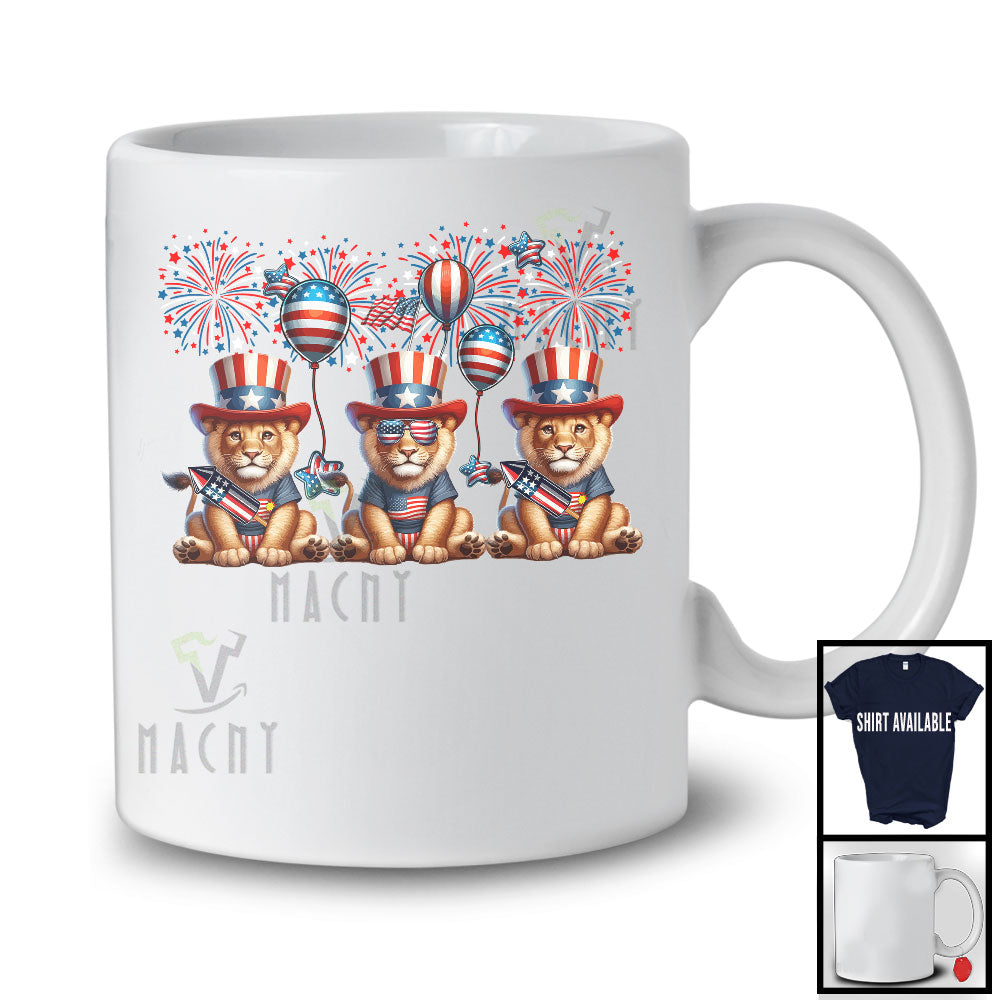 Three American Flag Lion, Adorable 4th Of July Fireworks Patriotic, Wild Animal Lover T-Shirt