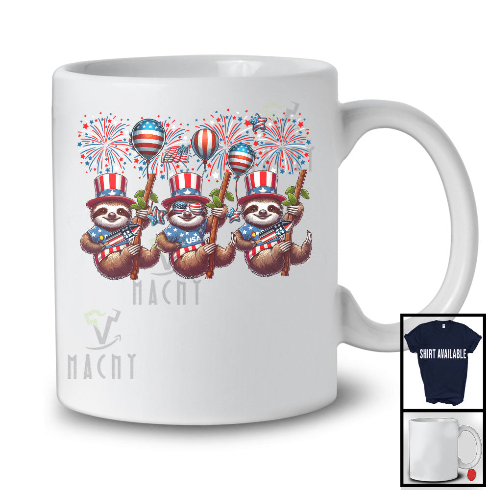 Three American Flag Sloth, Adorable 4th Of July Fireworks Patriotic, Wild Animal Lover T-Shirt