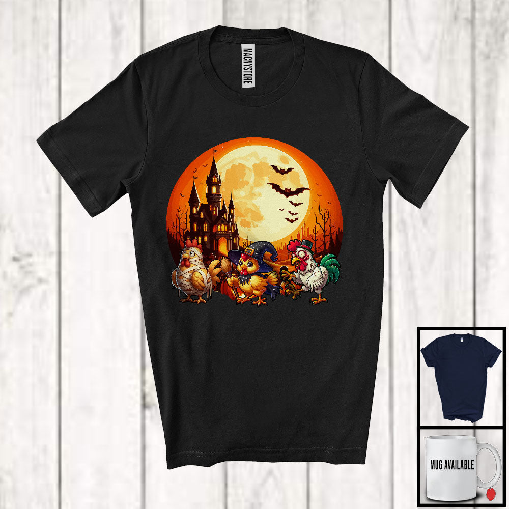 Three Boo Witch Mummy Chickens, Humorous Halloween Costume Chicken, Farmer Family Group T-Shirt