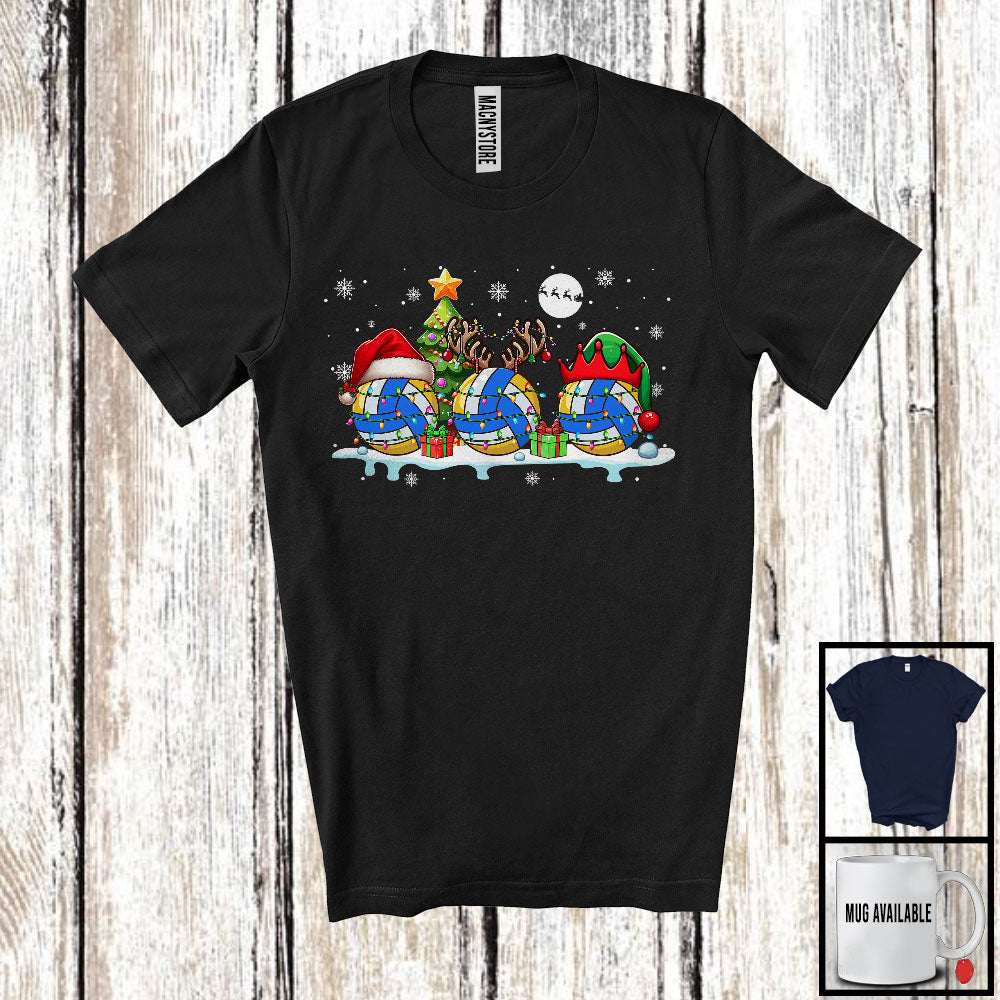 Three Santa Reindeer Elf Volleyball; Cheerful Christmas Tree Sport Playing Player; Family Group T-Shirt
